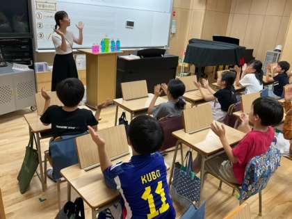音楽の時間です。「ペットボトルリズム」に挑戦しています。今日は、学校公開です。来校をお待ちしています。