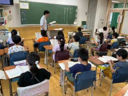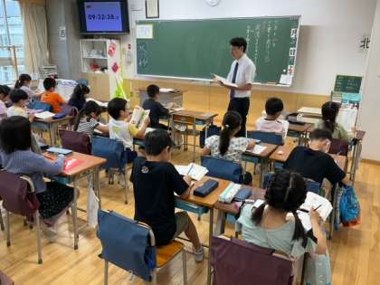 国語の時間です。「言葉で遊ぼう」段落の中心をとらえながら文章を読み進めています。