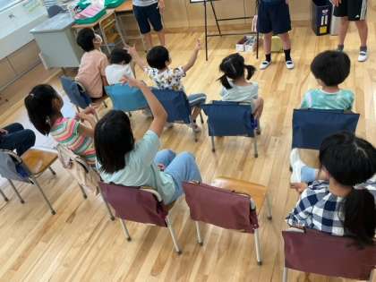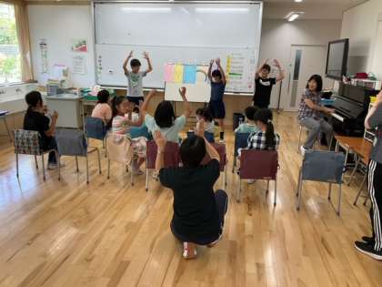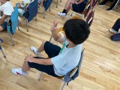 音楽の時間です。「にじ」を振り付けをしながら歌っています。1、2年生もがんばりましたね。