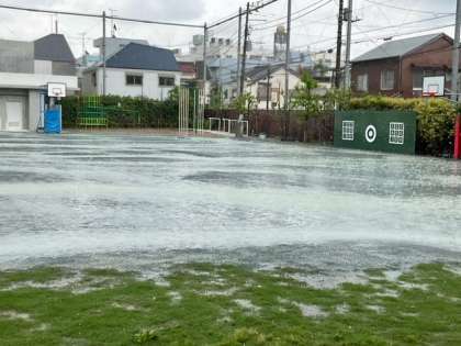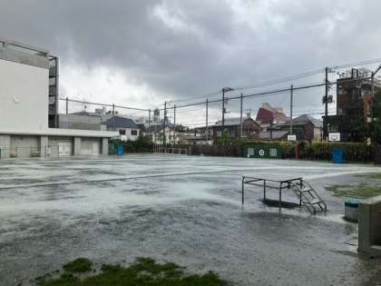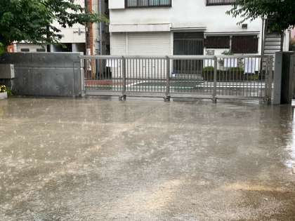 11時ごろから、急な大雨が降り出しました。中休みは、校庭で遊ぶことができたのに