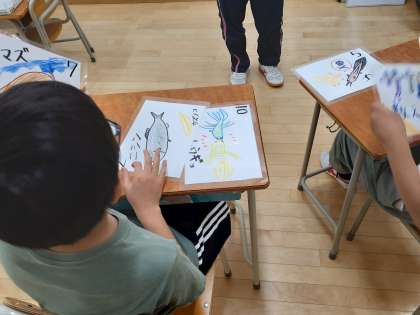 国語の時間です。かぞえうたを読んだり、文字を書いたりする活動に意欲的に取り組みました。