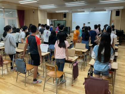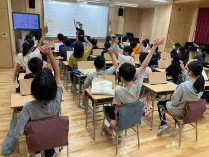 音楽の時間です。口の開け方のトレーニングとして、早口言葉に挑戦しています。