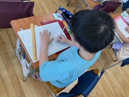 算数の時間です。これから、ものさしを使って、いろいろな物の長さを調べます。まずは、予想をしてみましょう。消しゴムは何センチくらかな?