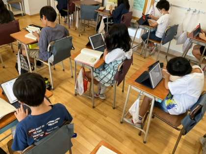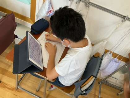 国語の時間です。「言葉の意味が分かること」何度も推敲を重ねながら、要旨をまとめています。