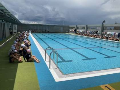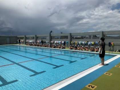 体育の時間です。2年生のプール開きです。バディの確認をしっかりしています。