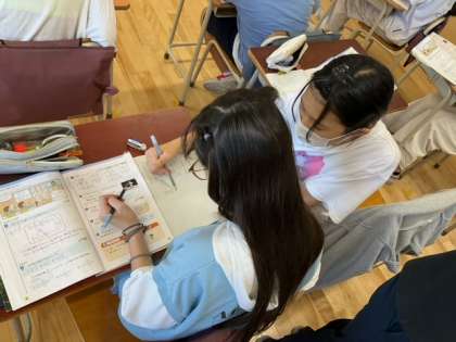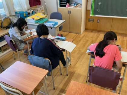 算数の時間です。分数のかけ算のまとめに入っています。それぞれがまとめ方を工夫しています。