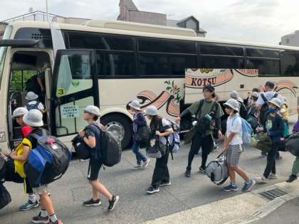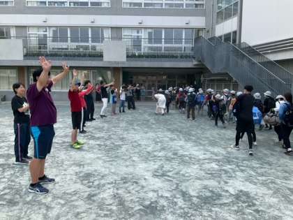 先生もたくさんお見送りに来てくれました。さあ、元気に行ってきましょう。