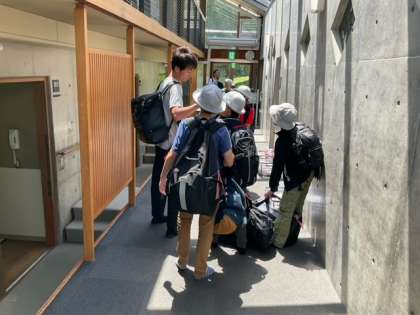 宿舎に入りました。どんな部屋なのか、わくわくしますね。このあと、避難訓練になります。