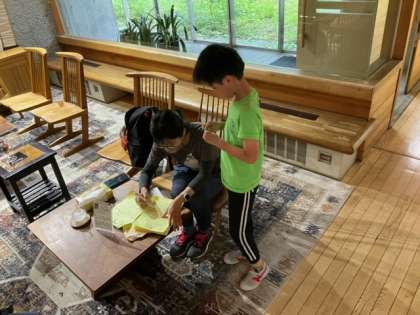保健係が生活班の健康カードを集めて、看護師さんの確認を受けています。みんな元気です。