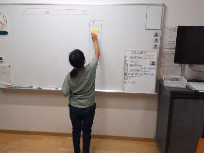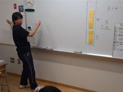 算数の時間です。数のお部屋を縦にして、筆算の計算につなげていきます。