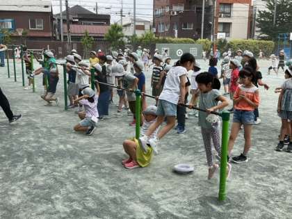 2、3年生のわくわくタイムです。しもきたサーキットに挑戦しています。朝からたっぷり体を動かしています。