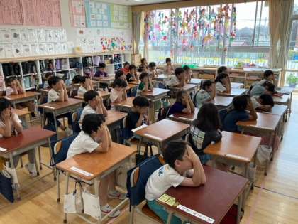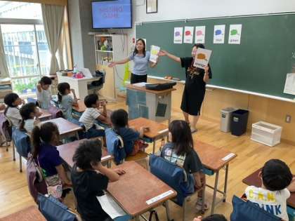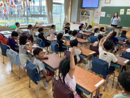 外国語活動の時間です。とても楽しそうに英語を学習しています。笑顔が弾けていますね。