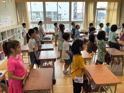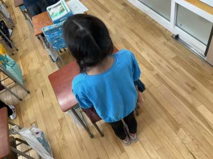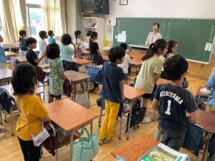 音楽の時間です。元気いっぱい校歌を歌って、よい1日がスタートしました。