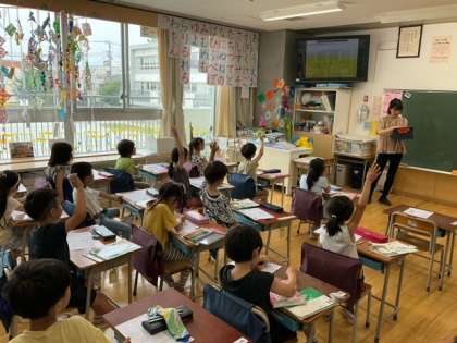 国語の時間です。「ま」のつく言葉を発表しています。お気に入りの妖怪が、たくさん出てきました。