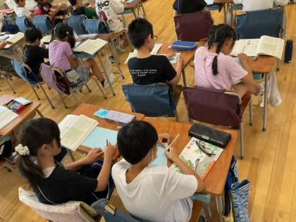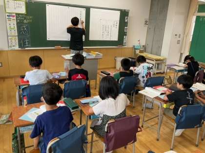 国語の時間です。「手紙」の学習をしています。「あじさいの花がきれいにさきました。」すてきですね。