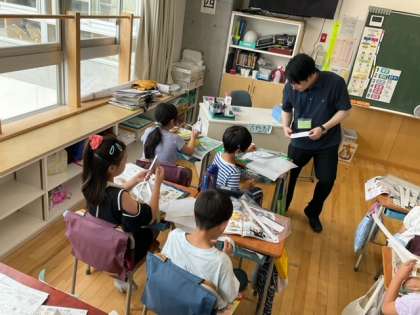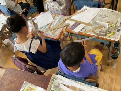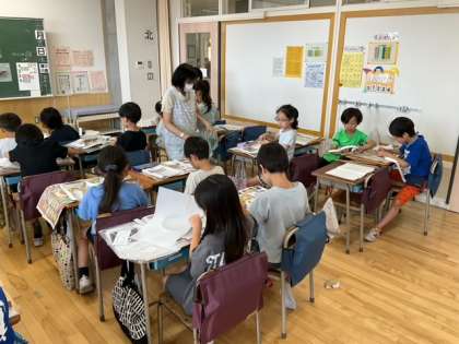 図工の時間です。「光サンドイッチ」光を通した美しさを楽しむ作品づくりをしています。まずは、外枠を作っています。