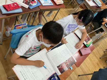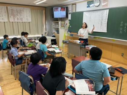 国語の時間です。4年生の研究授業の様子です。下北沢小学校では、今年度、国語科を重点に研究を進めています。
