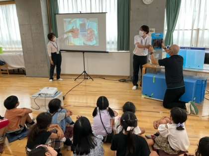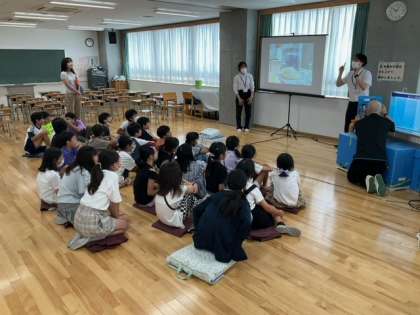 東京都水道局の出前授業「水道キャラバン」を開催しています。蛇口から直接水を飲める国は限られています。それは、なぜか? 楽しく学習しています。