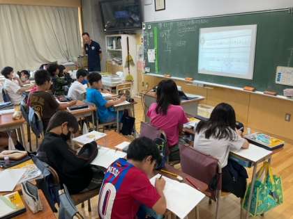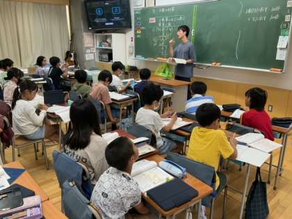 算数の時間です。「小数のわり算」わられる数が小数第二位までの筆算に取り組んでいます。