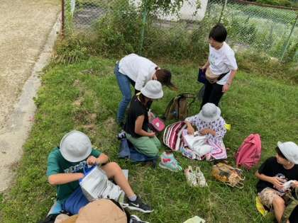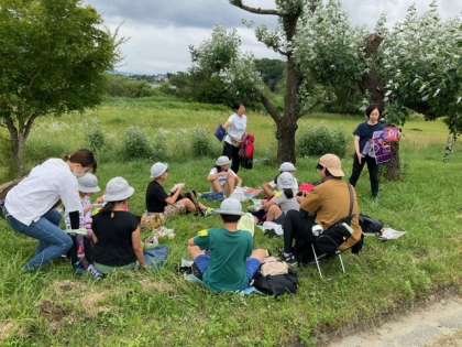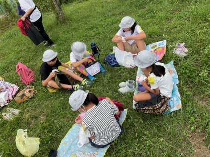 芝生の上で、お弁当です。早く学園に到着したので、ゆっくり時間があります。