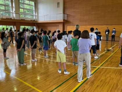 河口湖連合移動教室の開園式を行っています。下北沢小学校の6年生が児童代表の言葉を述べました。