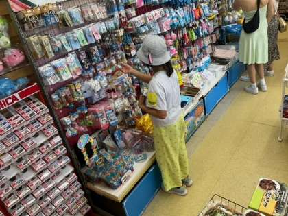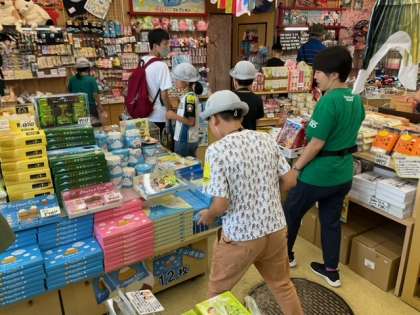お土産を買っています。お小遣いの内で、上手に買ってください。
