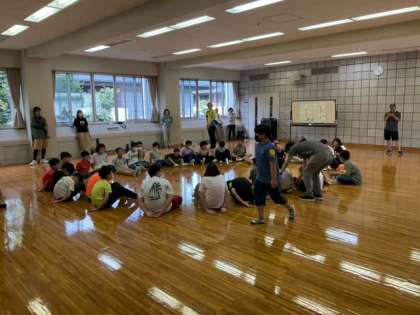 4校が集まって「子ども会」を開催しています。学校紹介やゲーム、ダンスなどを通して交流しています。