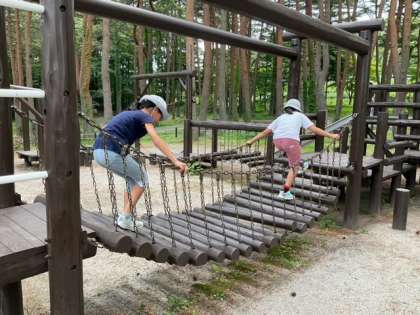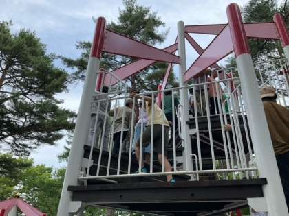 遊び時間の後半は、遊具遊びです。大きな遊具がたくさんあって、ダイナミックに遊べます。