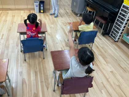 今日は、1、2年生で朝の会をしています。元気にあいさつができました。