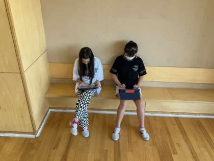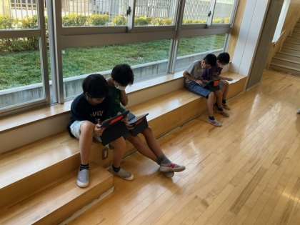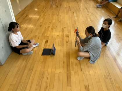 学級活動の時間です。日光林間学園に向けて、オリジナルの日光紹介動画を作成しています。