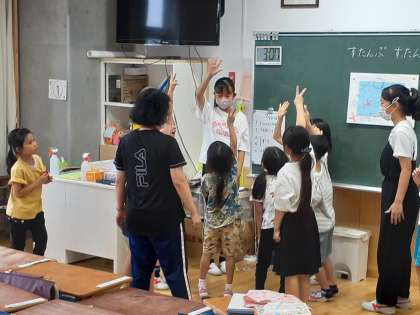なかよし班の時間です。今回も6年生が考えて準備した遊びを縦割り班で遊んでいます。工夫がある活動ばかりでみんなとても楽しそうです。