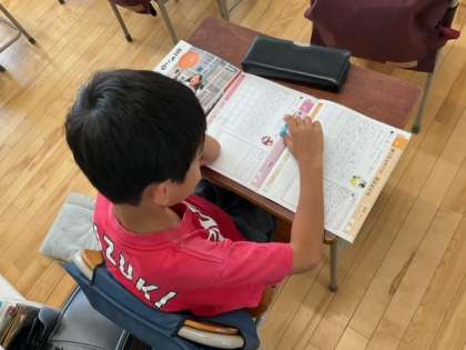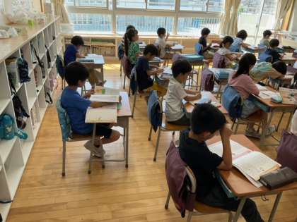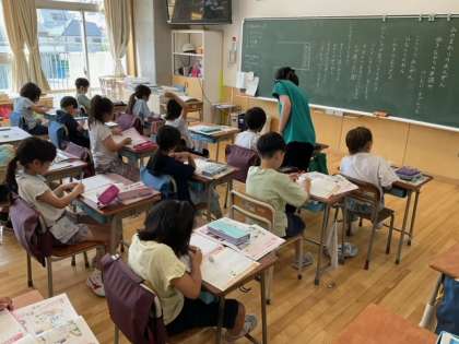 道徳の時間です。「あぶないよ」身の回りの安全について、資料をもとに考えています。