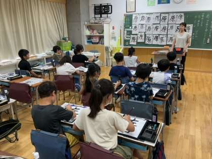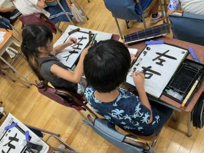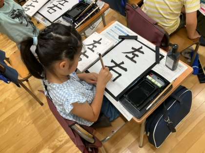 習字の時間です。今日の題字は、「左右」です。筆順も大事ですよ。