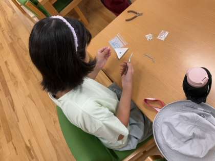 図書室は、「クールデコに挑戦してみよう!」です。キラキラアクセサリーを作っています。