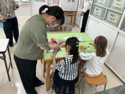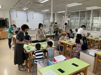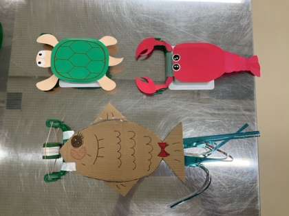 家庭科室は、「手提げホルダーを使って工作!」です。動くおもちゃが出来上がります。
