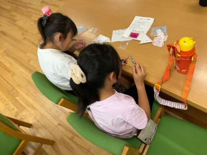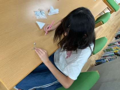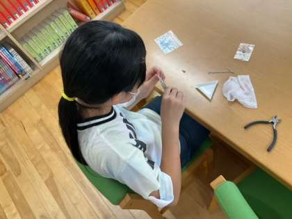 「キラキラアクセサリーづくり」は、集中力が必要です。すてきなアクセサリーができました。