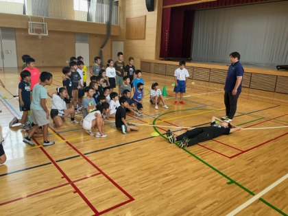 走り方のコツを教えていただいています。陸上選手のストライドは、身長を超えていました。