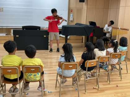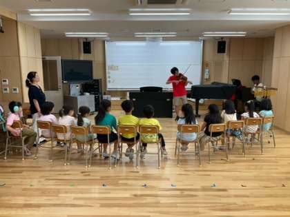 「あつまれ! アンサンブルの仲間たち」まずはじめに、バイオリンとピアノで、すてきな演奏を聴かせていただきました。
