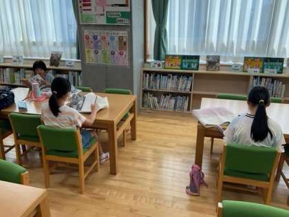 8時30分から10時30分まで、図書室を開放しています。8月3日までと8月24、25日が開放期間です。