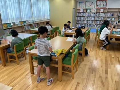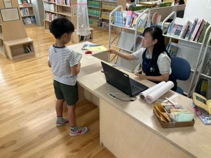 本の貸し出しもしています。暑いので、帽子をかぶって来てくださいね。