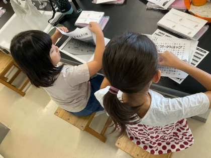 世田谷区社会福祉協議会のみなさんによる「点字ってなんだろう?」を開催しています。点字で自分の名刺を作ります。
