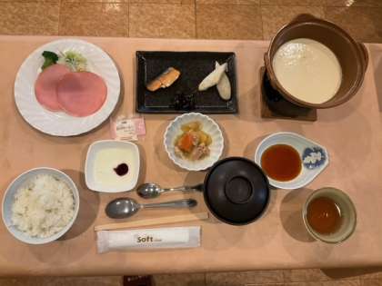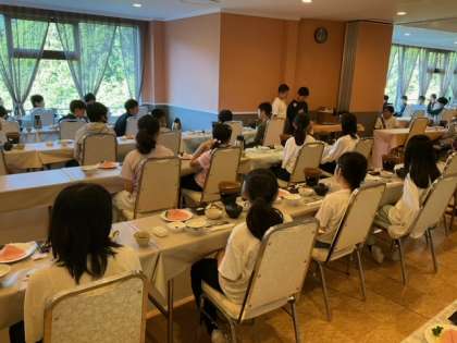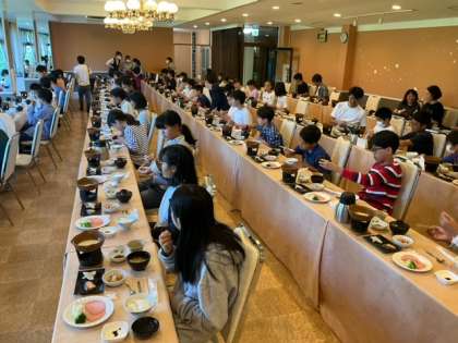 2日目の朝食です。食事係からは、「ハイキングがあるので、しっかり食べましょう」との呼びかけがありました。