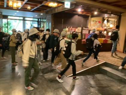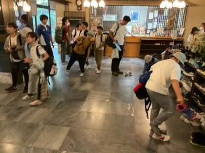 宿舎に戻りました。予定より早く入浴タイムにします。たくさん歩いて疲れたね。