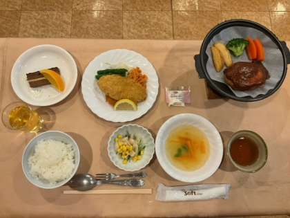 2日目の夕食です。たくさん歩いたので、いっぱい食べてくださいね。