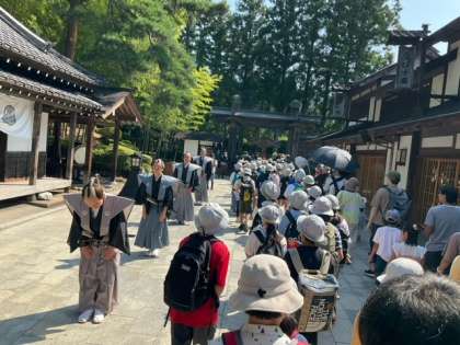 お侍さんの出迎えを受け、日光江戸村に入りました。これから2時間、自由に江戸村を楽しみます。