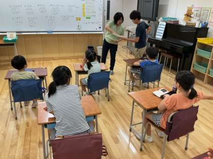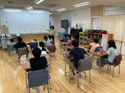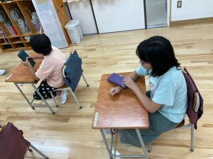 学級活動の時間です。2学期の係活動の確認をしています。カードを作成して、みんなに紹介します。