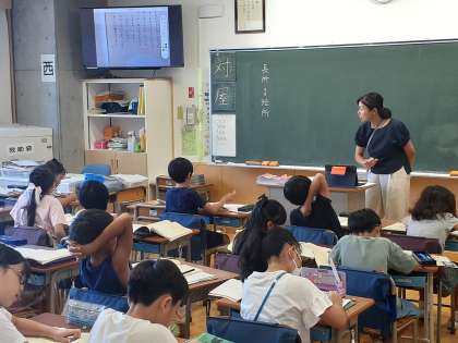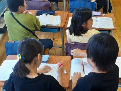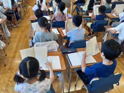 国語の時間です。連ごとの内容を読み取り、音読に生かしていました。