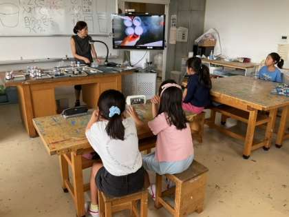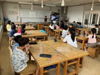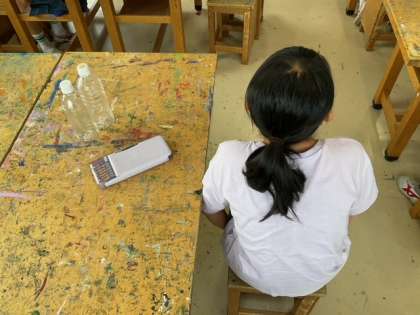 図工の時間です。「色砂づくり」白砂を使って、自分の色を作ります。いやあ面白そうですね。