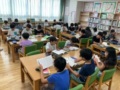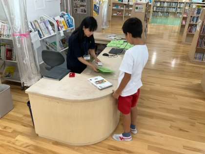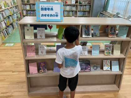 読書の時間です。図書室には、いろいろのコーナーが設置されています。図書委員も活躍しています。