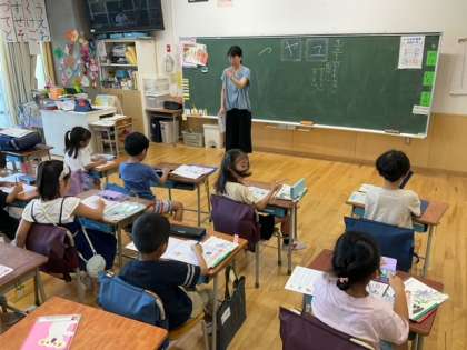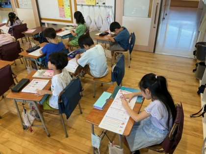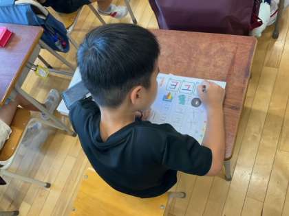 国語の時間です。カタカナの学習を進めています。今日は、「ヤ、ユ、ヨ」の練習です。